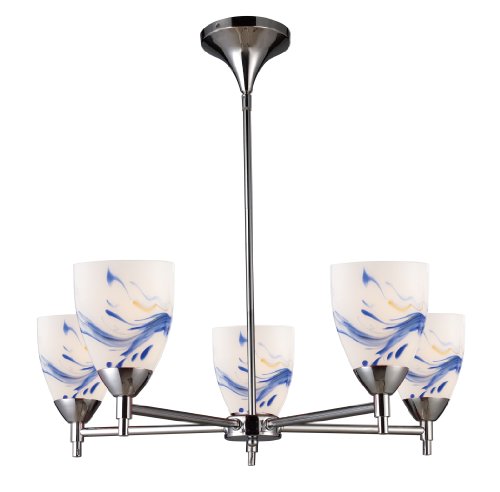 Designed To Showcase Our Many Blown Glass Options, The Celina Collection Utilizes A Simplified Frame That Embellishes The Shape And Color Of The Glass. Finished In Polished Chrome Or Dark Rust. Features: Finish: Polished Chrome Lamp: 5-60 Watt Med. Specifications: Dimensions: 28W x 9H inches Weight: 8 lbs..../ Copper ELK Lighting Celina 5-Light Chandelier In Polished Chrome And Autumn Glass / Chandelier Elk